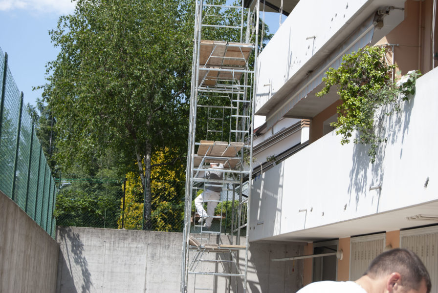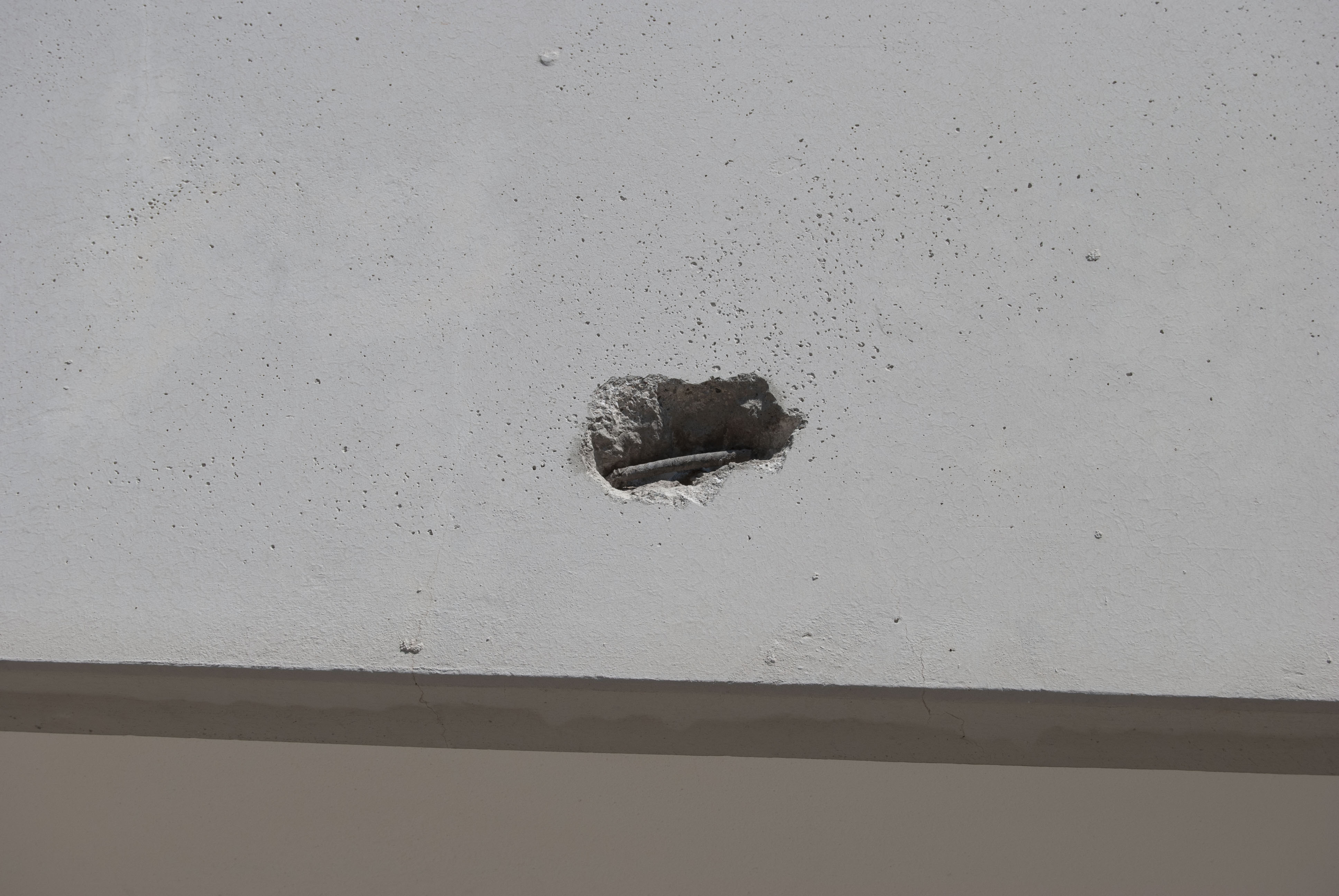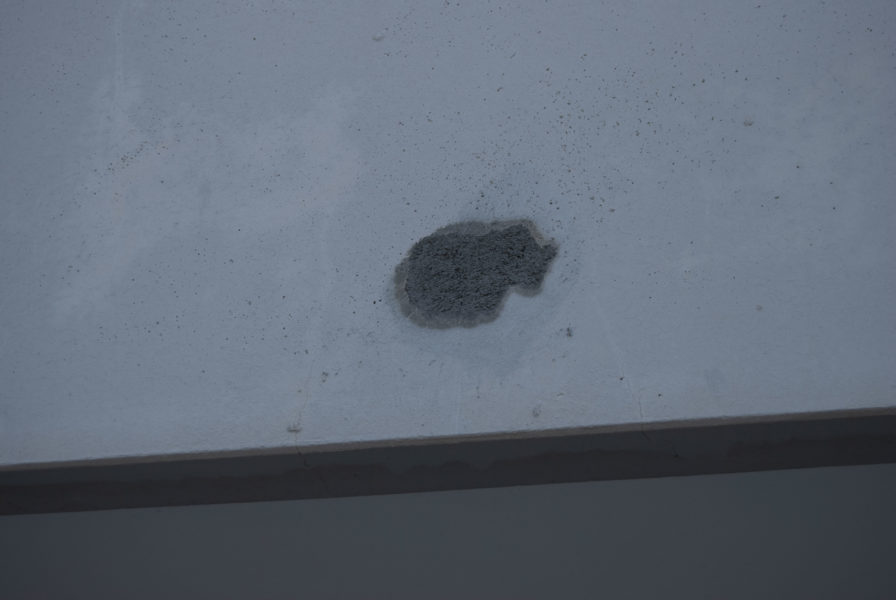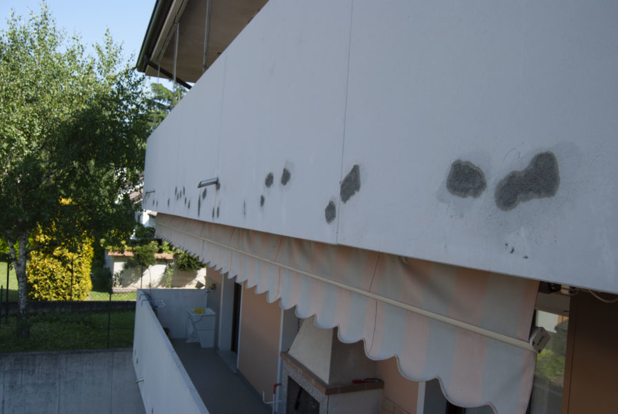 Intervento conservativo di parapetto in calcestruzzo, demolizione, taglio ferri in superficie, sabbiatura, mano di zincante inorganico, malta di aggrappo, malta di rinzaffo, finitura liscia, pittura anti carbonatazi