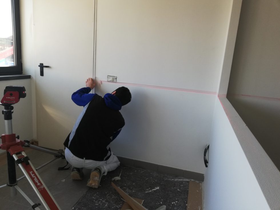 posa dl battiscopa da cm. 8,00 con terminale diritto.