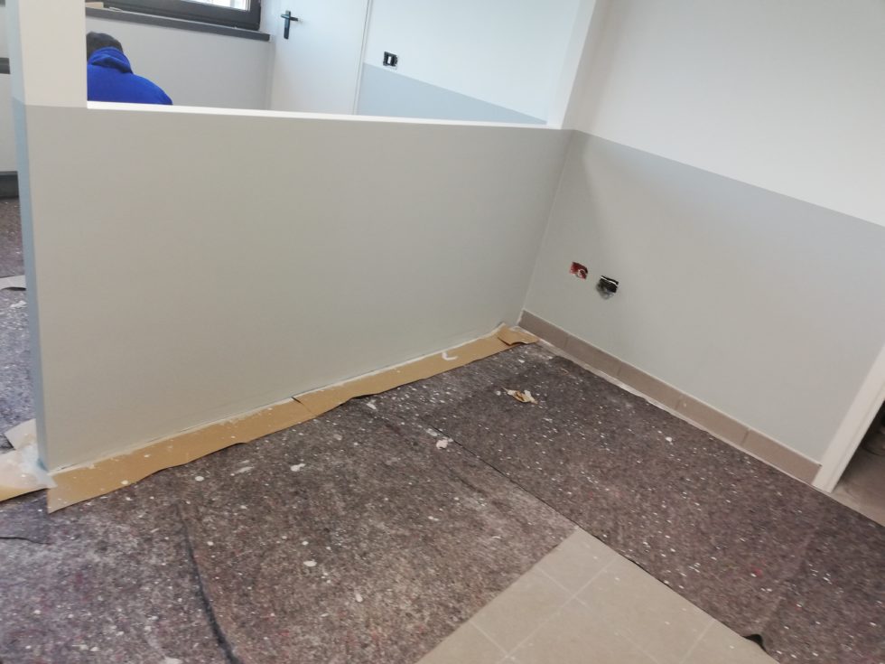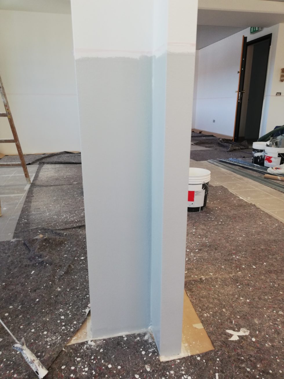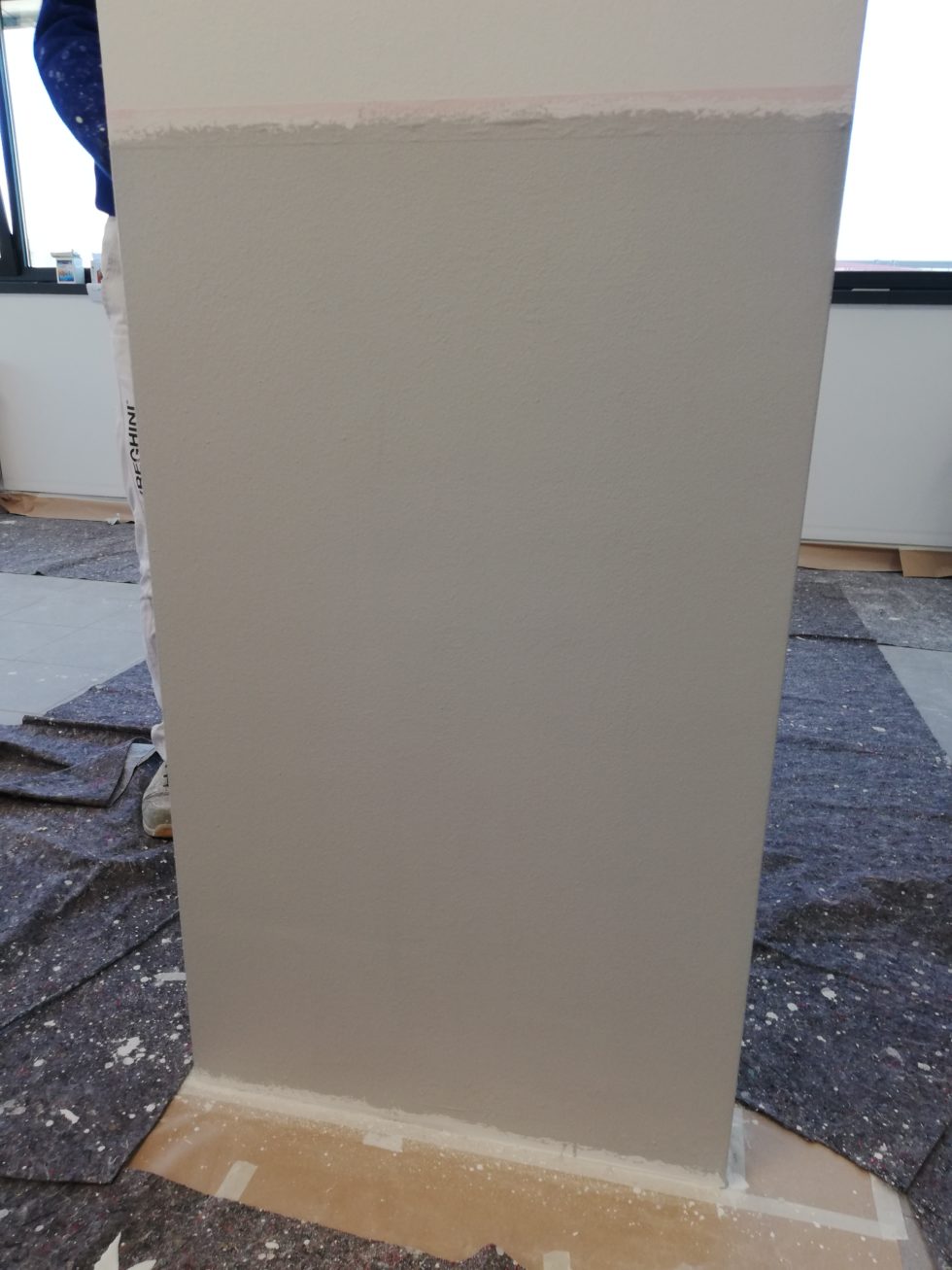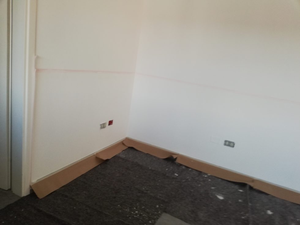Tinteggio con mano di fondo isolante e uniformante.