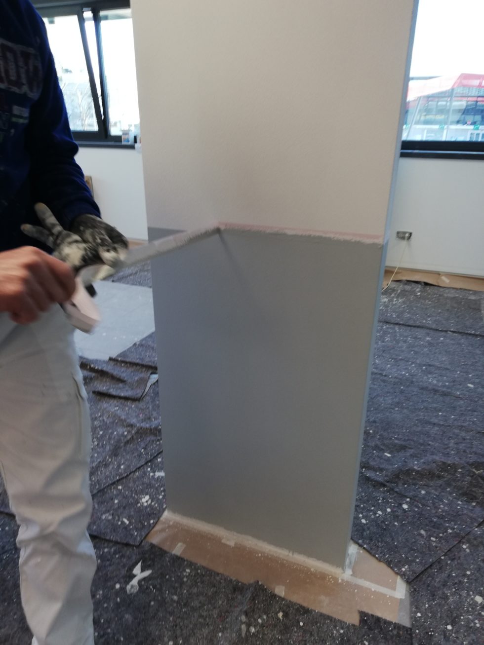 tinteggio dell’abbassamento con smalto grigio RAL 7045.