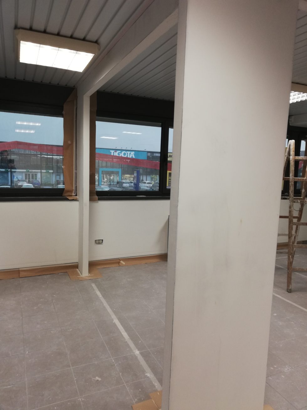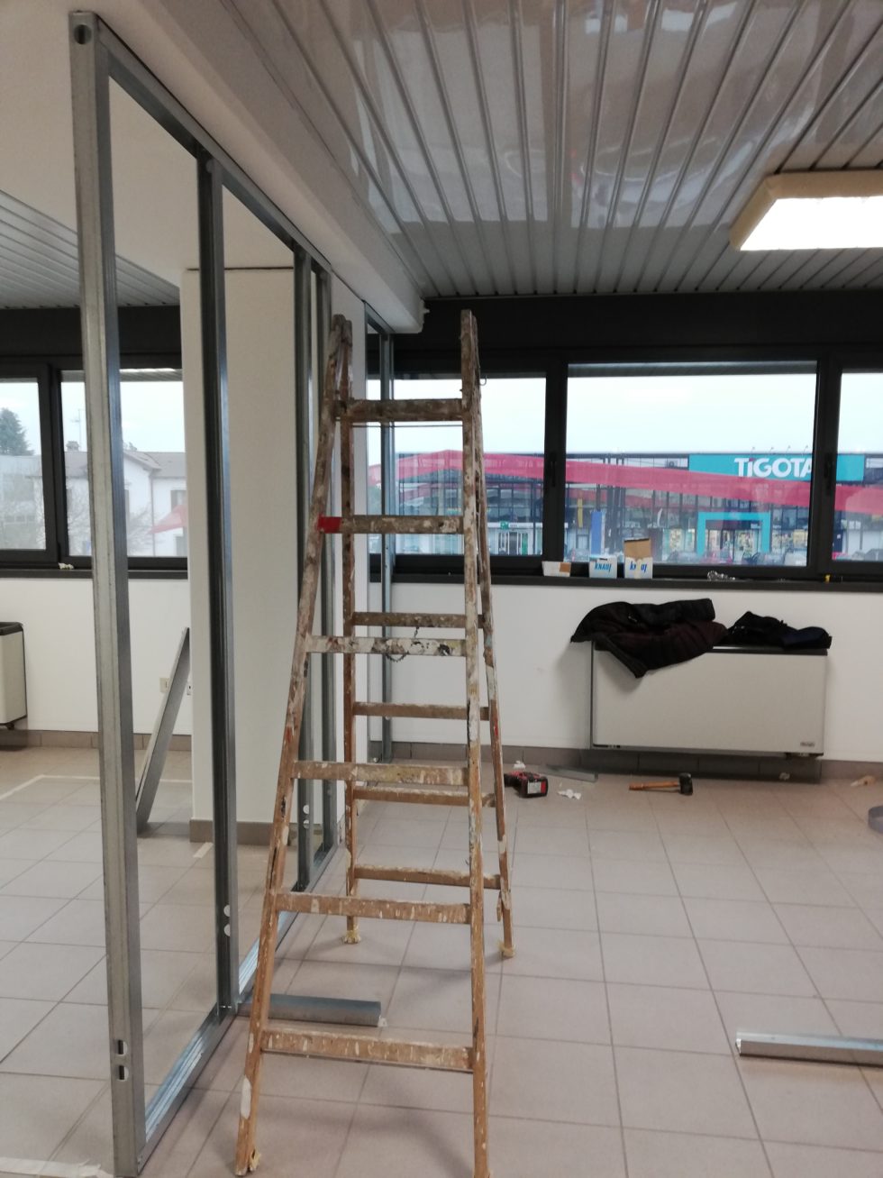 Realizzazione pareti divisorie, con velette a soffitto a contatto con il contro soffitto esistente,