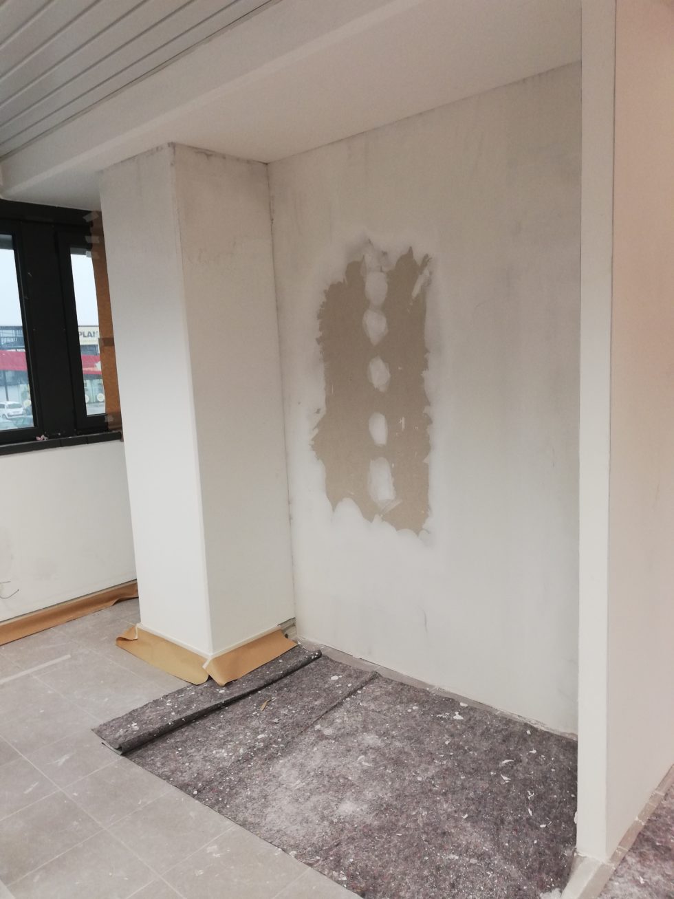 Stuccature di tutta la superficie con tre mani di stucco.